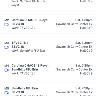 The schedule for this Saturday has been posted. Below I will post the schedule for this weekend. The 2026 NIKE Savannah Showdown will take place at the Savannah Convention Center, located at 1 International Drive, Savannah, GA 31421. Please be mindful of the parking situation this weekend. Coach Mac had sent out the link discussing the parking for this weekend. Parking will be hectic this weekend, so I encourage everyone to be there a bit earlier than we normally do. You could take about 30-45 minutes looking for parking. Also, I posted the 18s team club code for the tournament. You will need to have that team code to be enter into the tournament. If not, you will NOT be able to enter. We will be wearing our blue jersey Saturday and alternate jerseys per day. See you all this weekend.